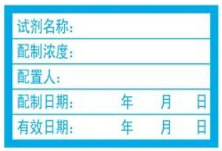 配制的试剂、反应产物等应有名称、浓度或纯度、责任人、日期等信息。